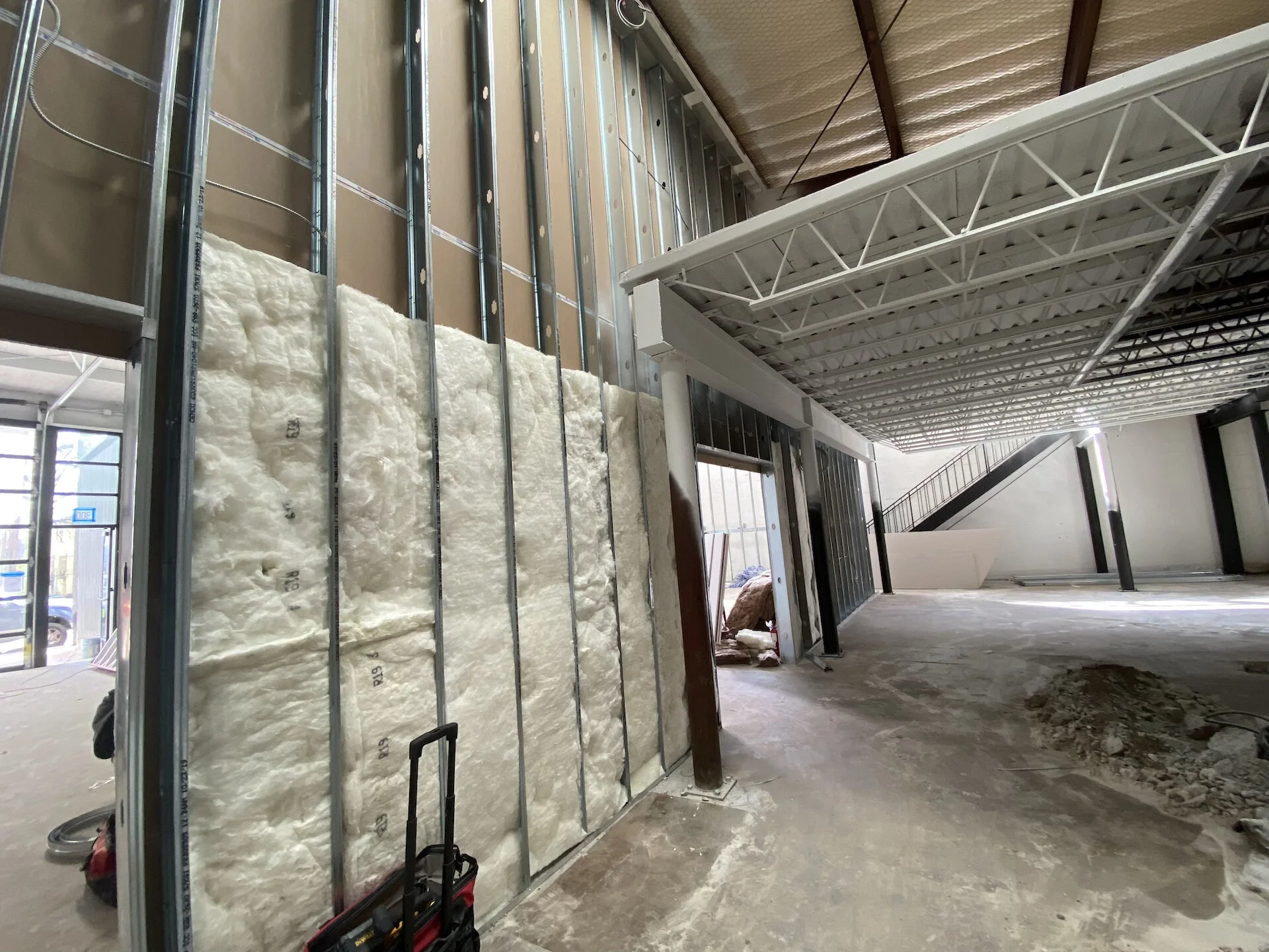 Framing continues. 1 side sheetrock continues. Painting continues. Foundation prep.