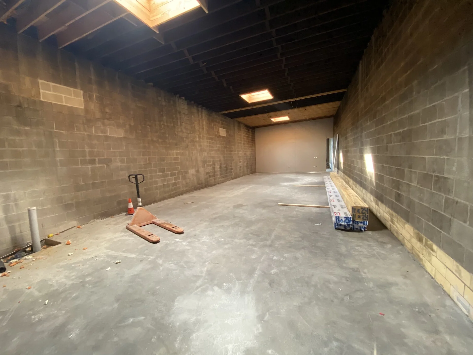 Trench cut pour-back. Framing continues. Electrical conduit run commences.